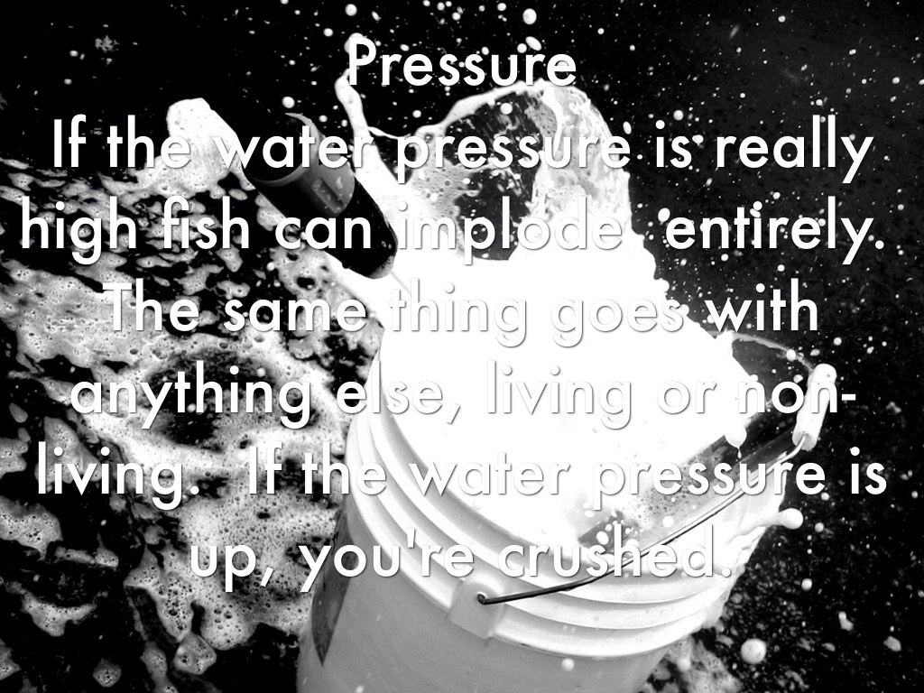 Pressure If the water pressure is really high fish can implode entirely. The same thing goes with anything else, living or non-living. If the water pressure is up, you're crushed.