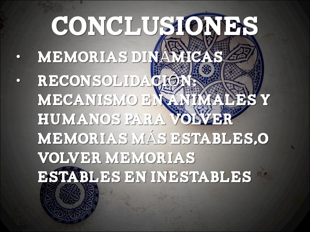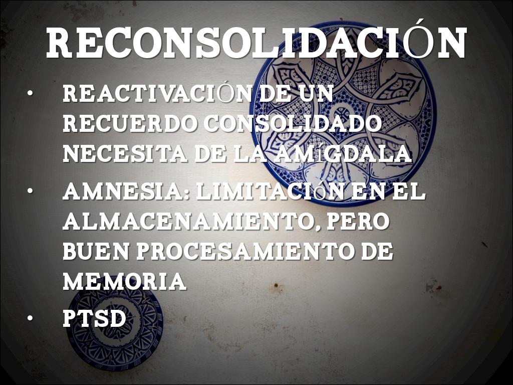 RECONSOLIDACIÓN: mecanismo en animales y humanos para volver memorias mÁs estables,o volver memorias estables en inestables