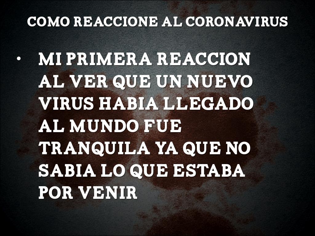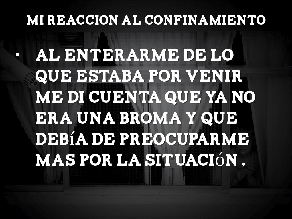 Mi REACCION al ver que tube que cerrar mi bar fue terrible ya que no podria seguir haciendo el trabajo que me gusta y ademas no podré cobrar a mis empleados,pero no me vine abajo e hice repartos de caracoles a domicilio que fueron bastante bien, seguidamente pude abrir el restaurante y ahora sigo mas o menos como antes del confinamiento.