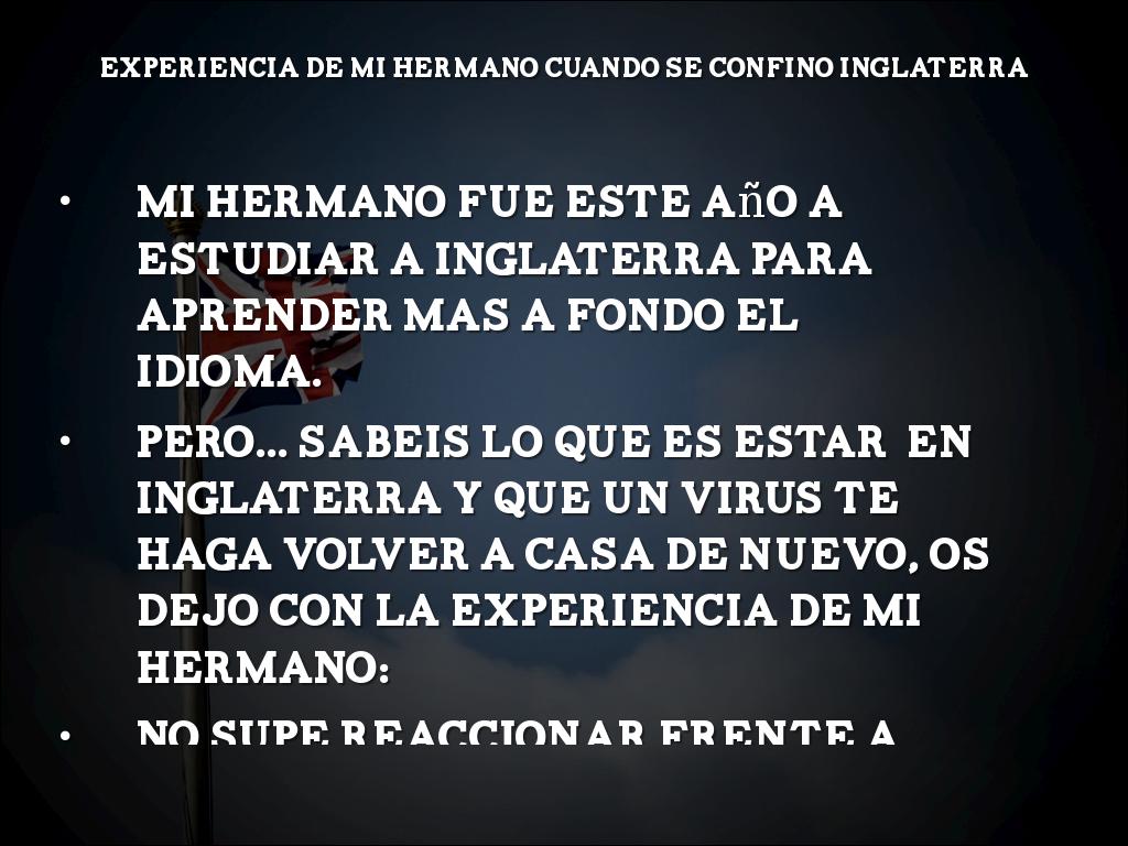 EXPERIENCIA DE MI HERMANO CUANDO SE CONFINO INGLATERRA