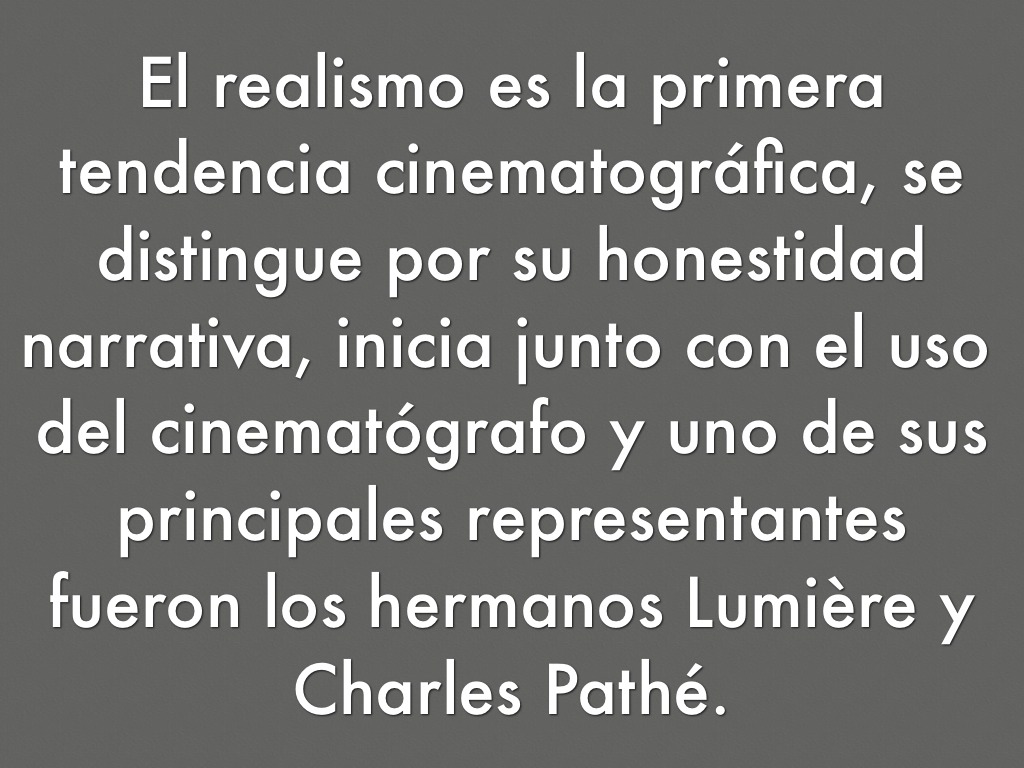 El realismo es la primera tendencia cinematográfica, se distingue por su honestidad narrativa, inicia junto con el uso del cinematógrafo y uno de sus principales representantes fueron los hermanos Lumière y Charles Pathé.