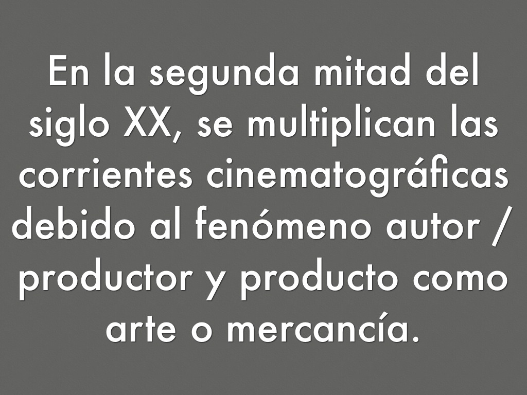 En la segunda mitad del siglo XX, se multiplican las corrientes cinematográficas debido al fenómeno autor / productor y producto como arte o mercancía.