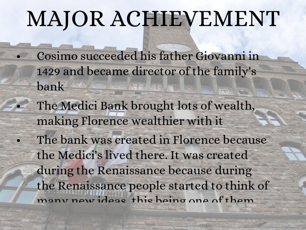 The Medici Bank brought lots of wealth, making Florence wealthier with it