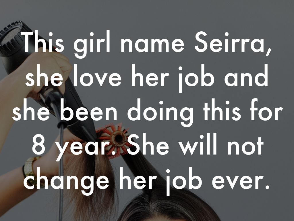This girl name Seirra, she love her job and she been doing this for 8 year. She will not change her job ever.