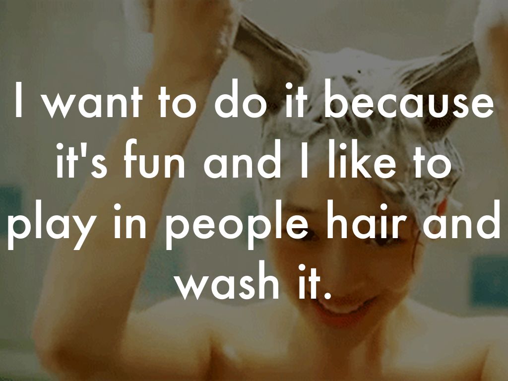 I want to do it because it's fun and I like to play in people hair and wash it.