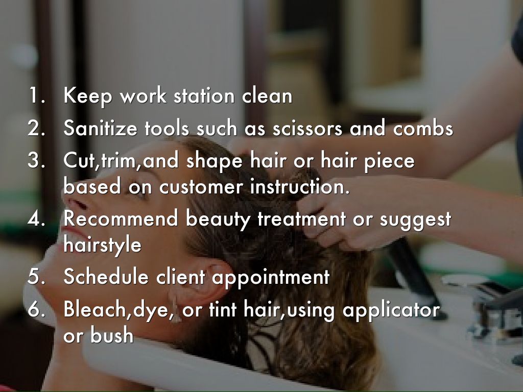 - Take courses like shampooing, coloring, hair care, hair design and styling.