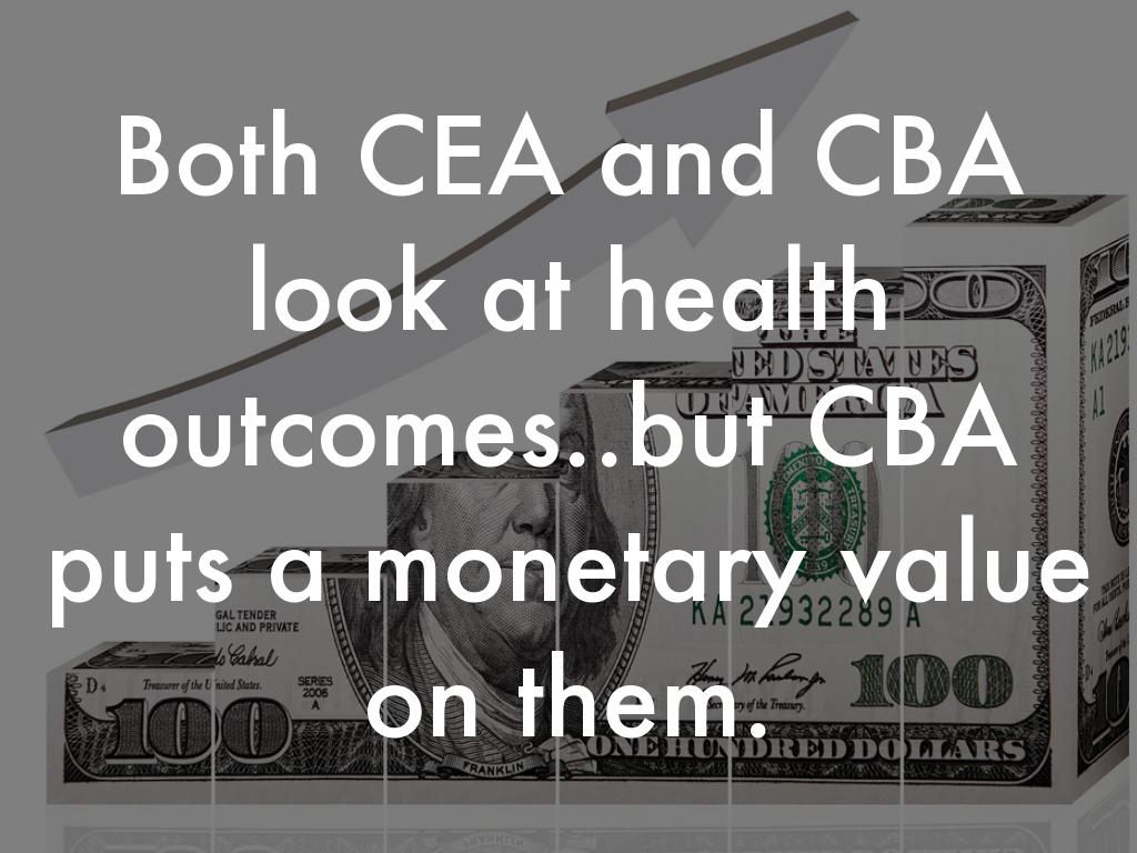 Both CEA and CBA look at health outcomes..but CBA puts a monetary value on them.