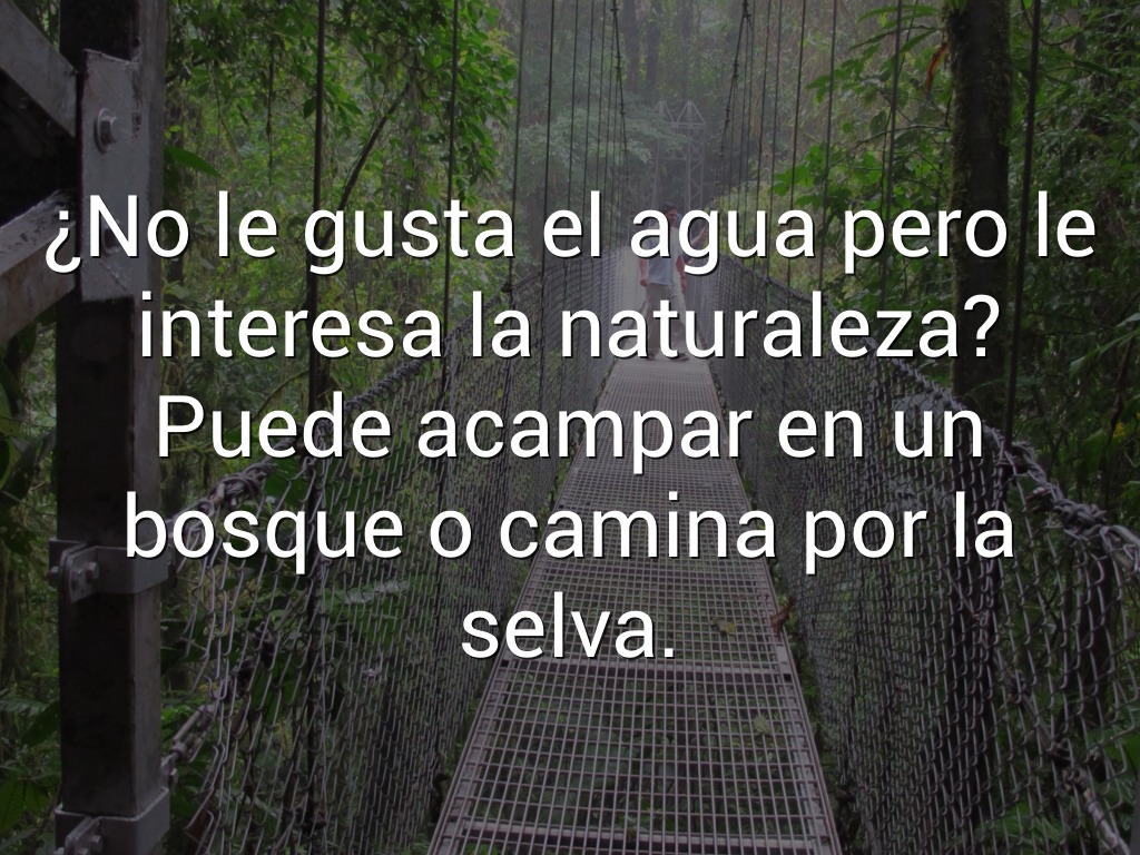 ¿No le gusta el agua pero le interesa la naturaleza? Puede acampar en un bosque o camina por la selva.