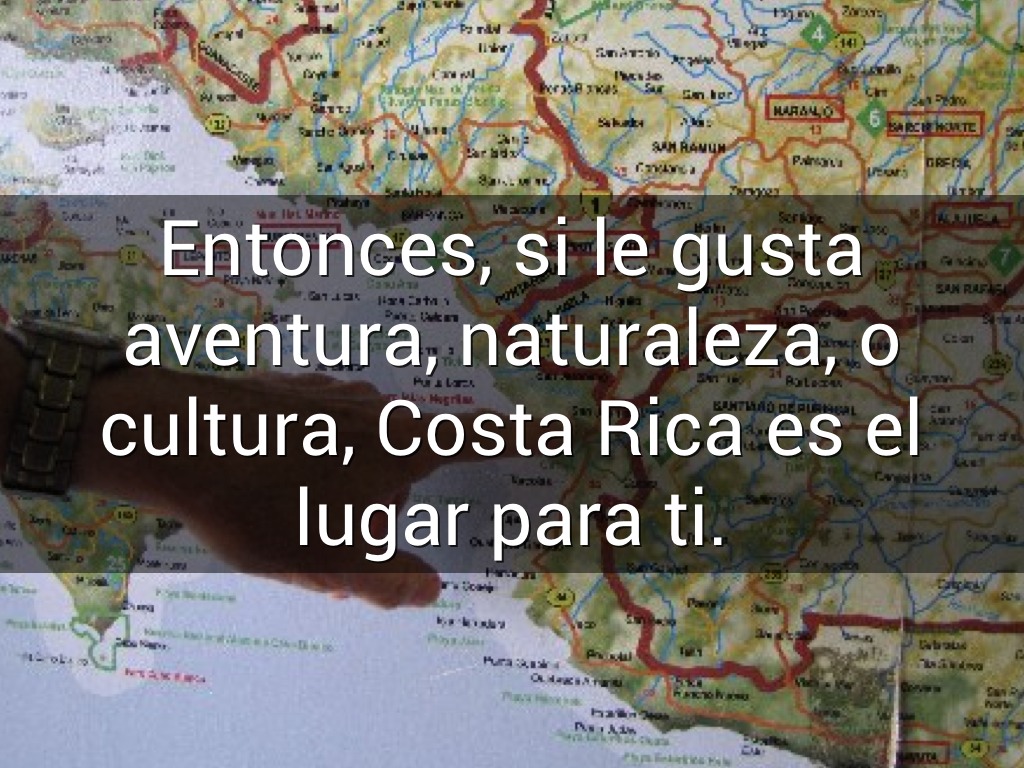 Entonces, si le gusta aventura, naturaleza, o cultura, Costa Rica es el lugar para ti.