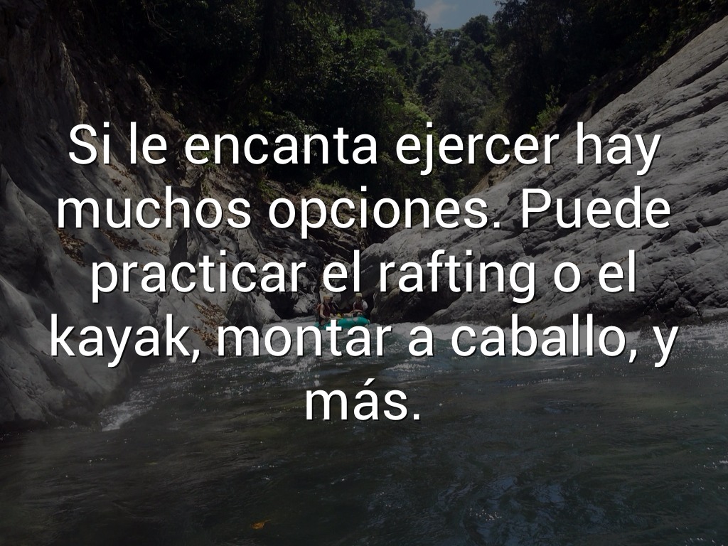 Si le encanta ejercer hay muchos opciones. Puede practicar el rafting o el kayak, montar a caballo, y más.