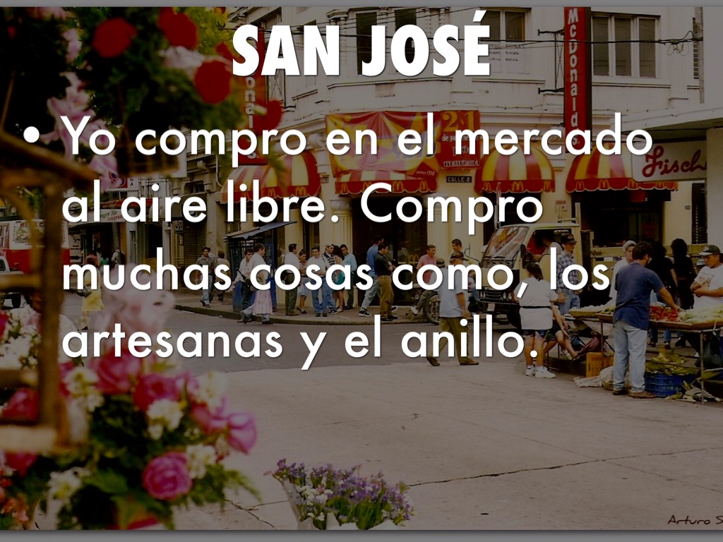 Yo compro en el mercado al aire libre. Compro muchas cosas como, los artesanas y el anillo.