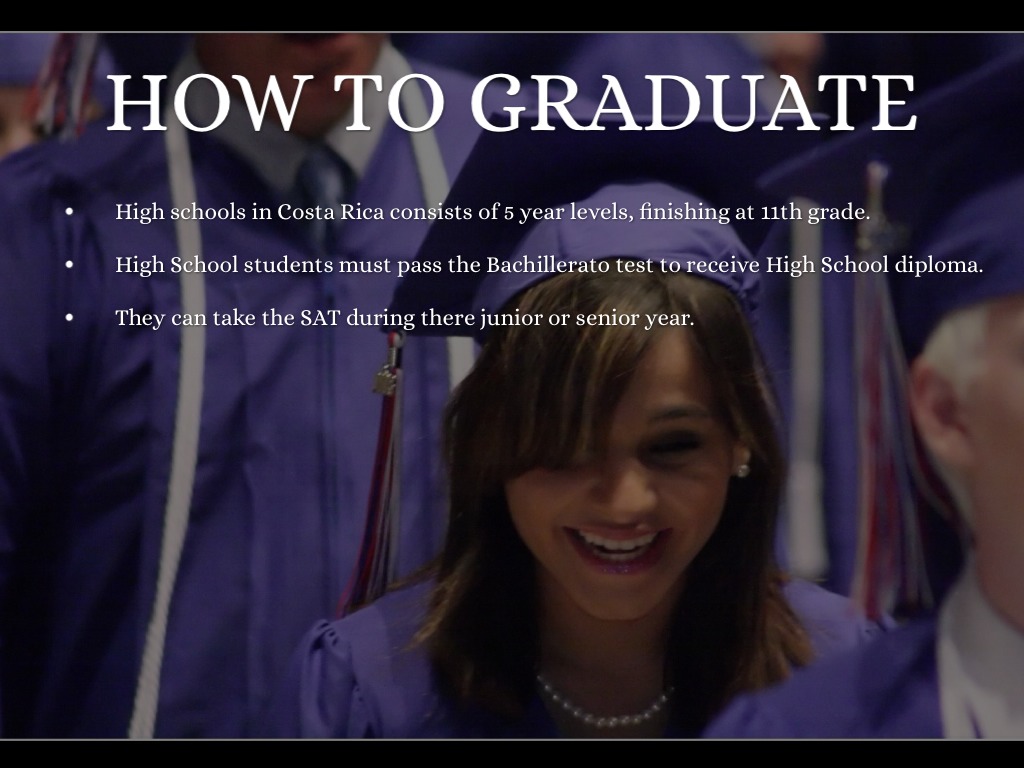 High schools in Costa Rica consists of 5 year levels, finishing at 11th grade.