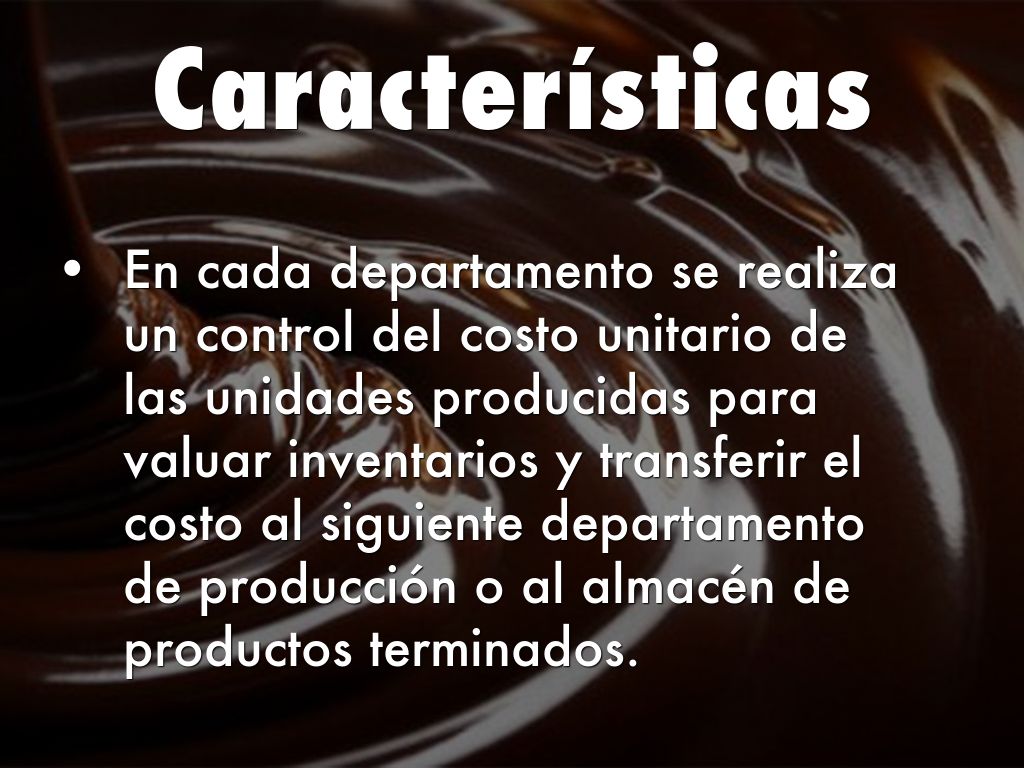 En cada departamento se realiza un control del costo unitario de las unidades producidas para valuar inventarios y transferir el costo al siguiente departamento de producción o al almacén de productos terminados.