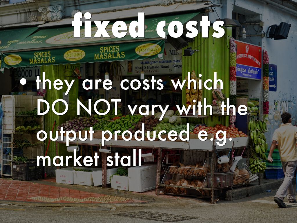 they are costs which DO NOT vary with the output produced e.g. market stall