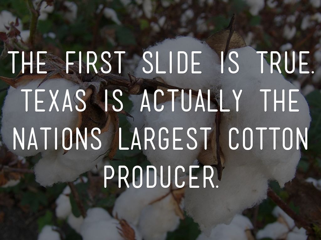 The first slide is true. Texas is actually the nations largest cotton producer.