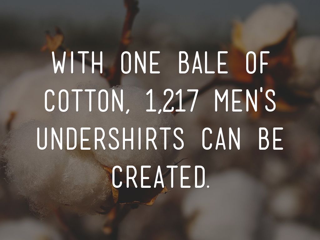 With one bale of cotton, 1,217 men's undershirts can be created.