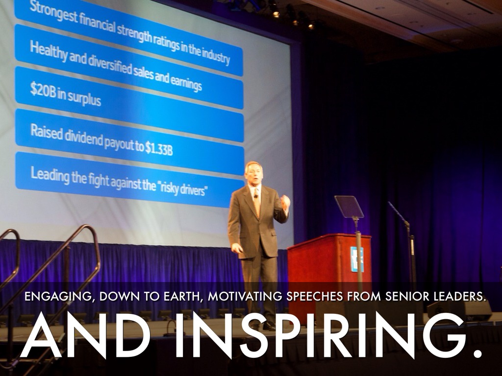 ENGAGING, DOWN TO EARTH, MOTIVATING SPEECHES FROM SENIOR LEADERS.