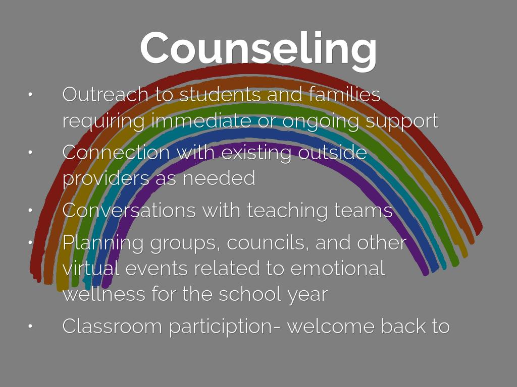 Planning groups, councils, and other virtual events related to emotional wellness for the school year