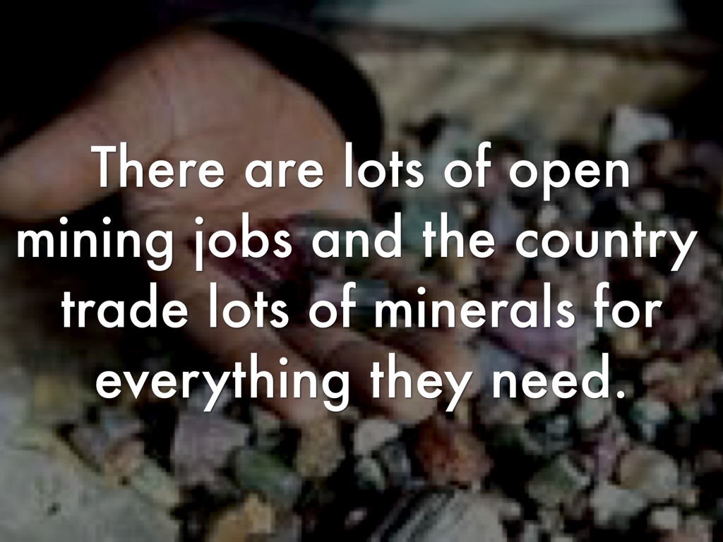 There are lots of open mining jobs and the country trade lots of minerals for everything they need.