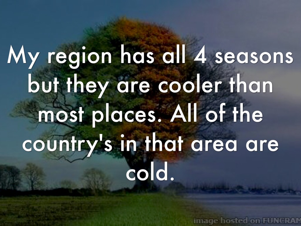 My region has all 4 seasons but they are cooler than most places. All of the country's in that area are cold.