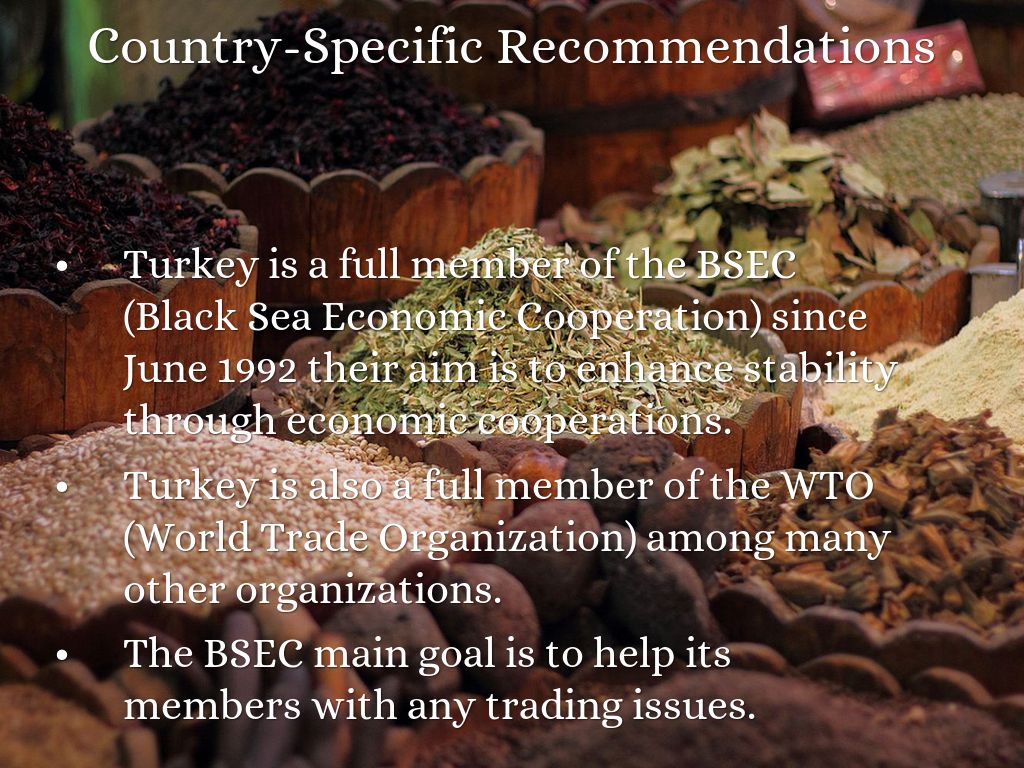• Turkey is also a full member of the WTO (World Trade Organization) among many other organizations.