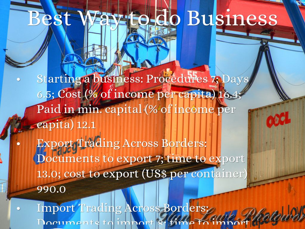 • Starting a business: Procedures 7; Days 6.5; Cost (% of income per capita) 16.4; Paid in min. capital (% of income per capita) 12.1