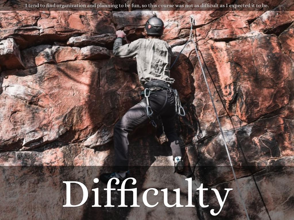 I tend to find organization and planning to be fun, so this course was not as difficult as I expected it to be.