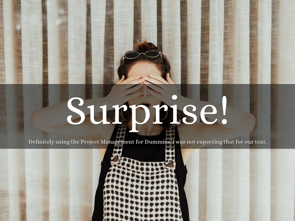 Definitely using the Project Management for Dummies. I was not expecting that for our text.