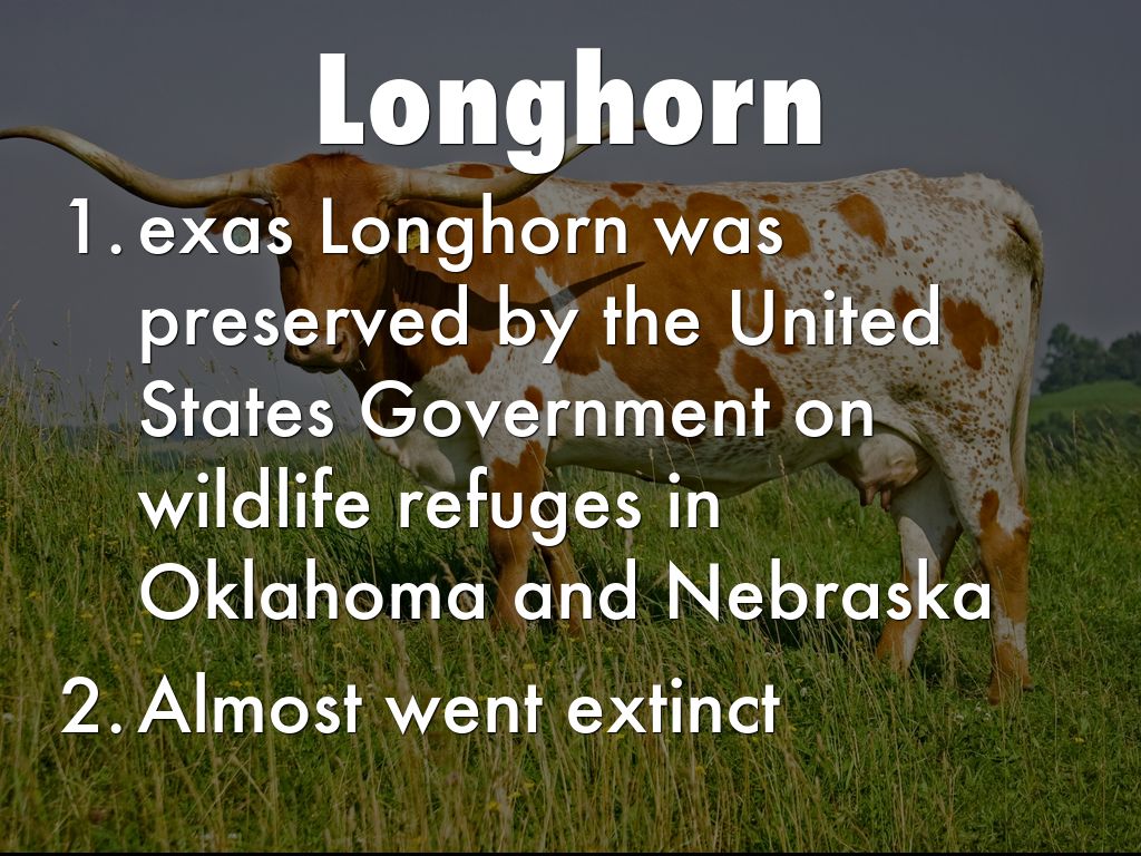 exas Longhorn was preserved by the United States Government on wildlife refuges in Oklahoma and Nebraska
