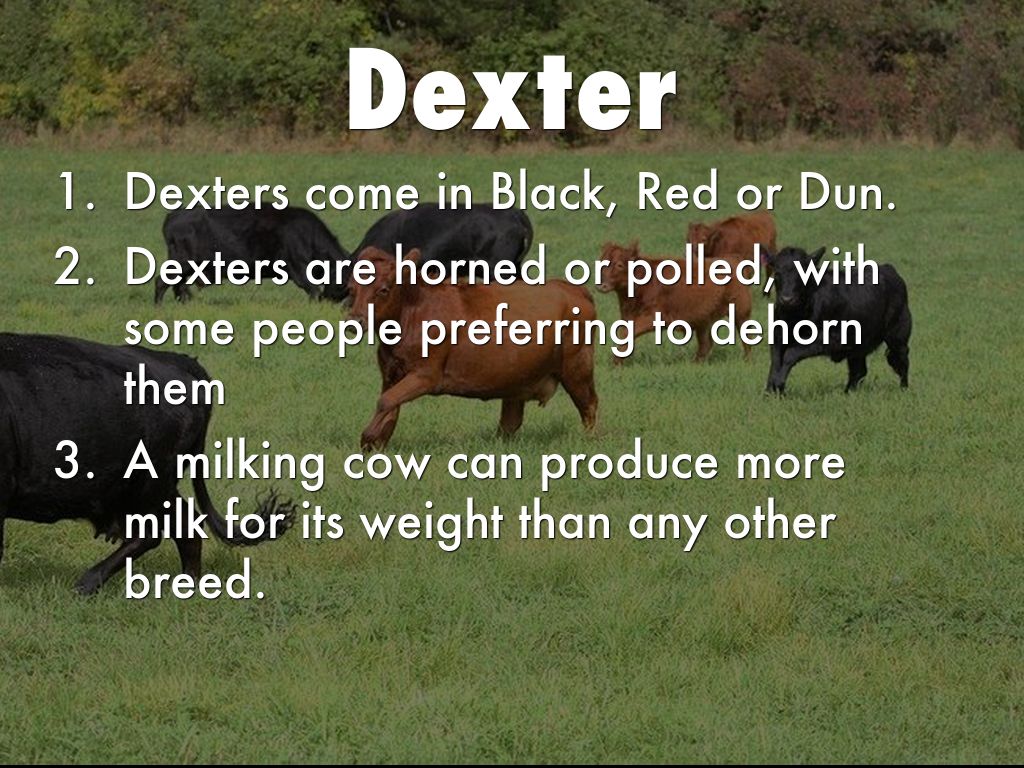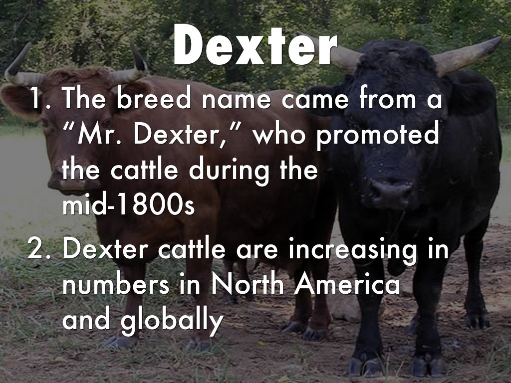 The breed name came from a “Mr. Dexter,” who promoted the cattle during the mid‑1800s