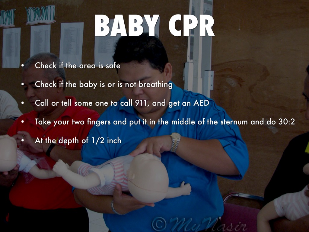Take your two fingers and put it in the middle of the sternum and do 30:2