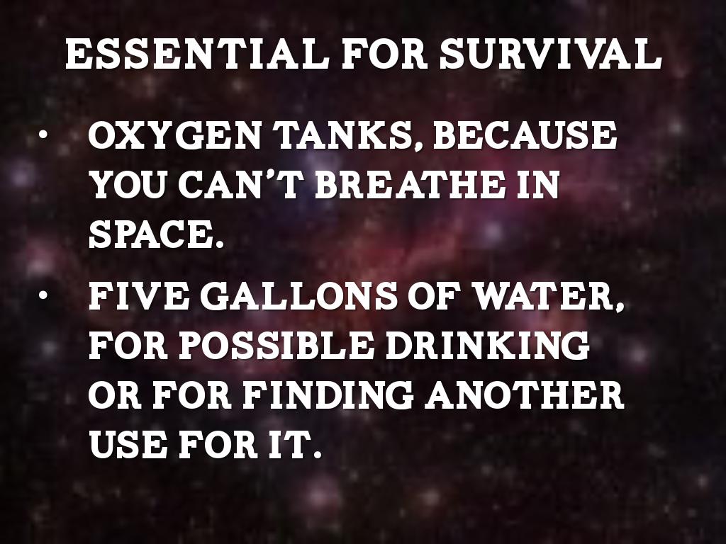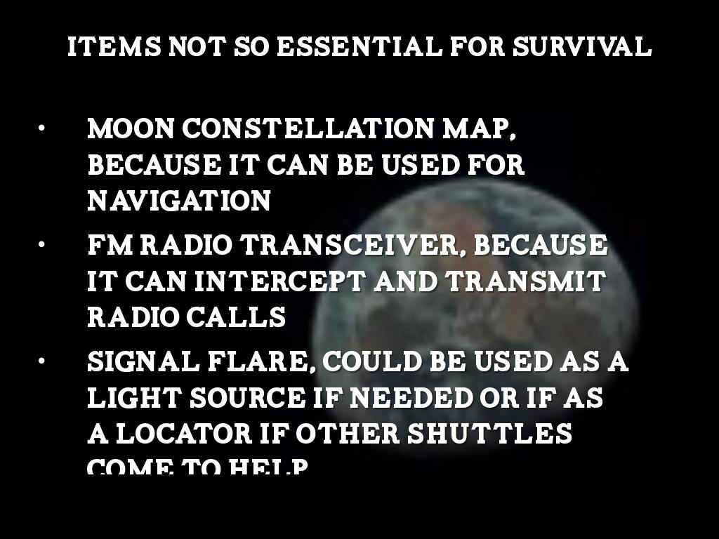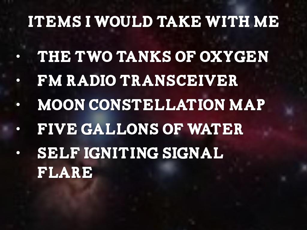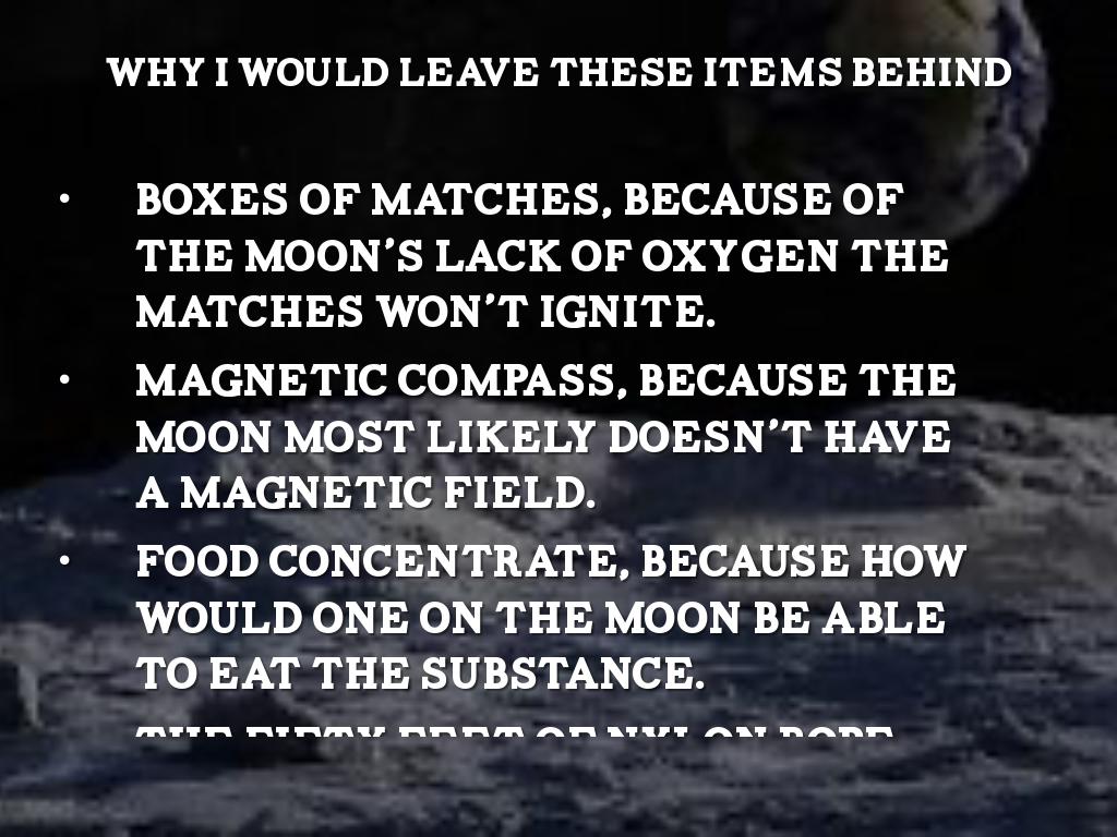 Boxes of matches, because of the moon’s lack of oxygen the matches won’t ignite.