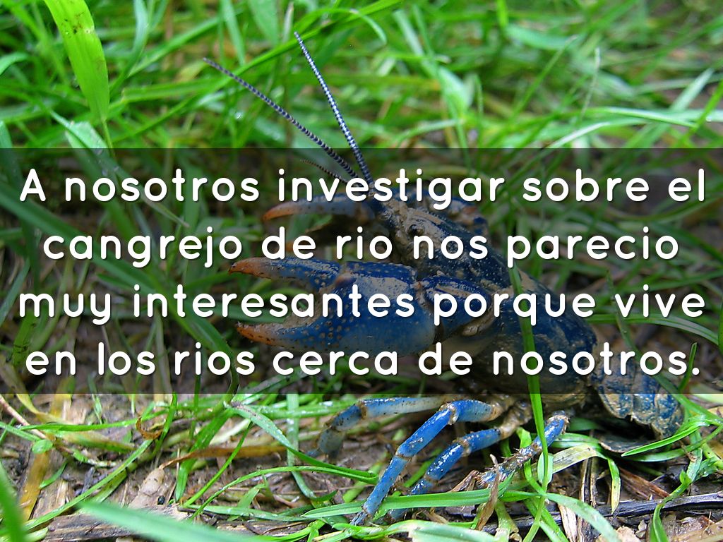 A nosotros investigar sobre el cangrejo de rio nos parecio muy interesantes porque vive en los rios cerca de nosotros.