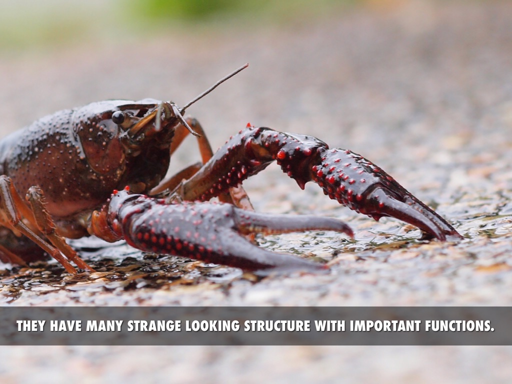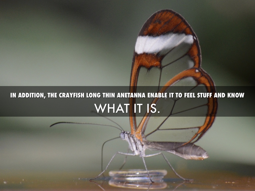 IN ADDITION, THE CRAYFISH'S LONG THIN ANETANNA ENABLE IT TO FEEL STUFF AND KNOW