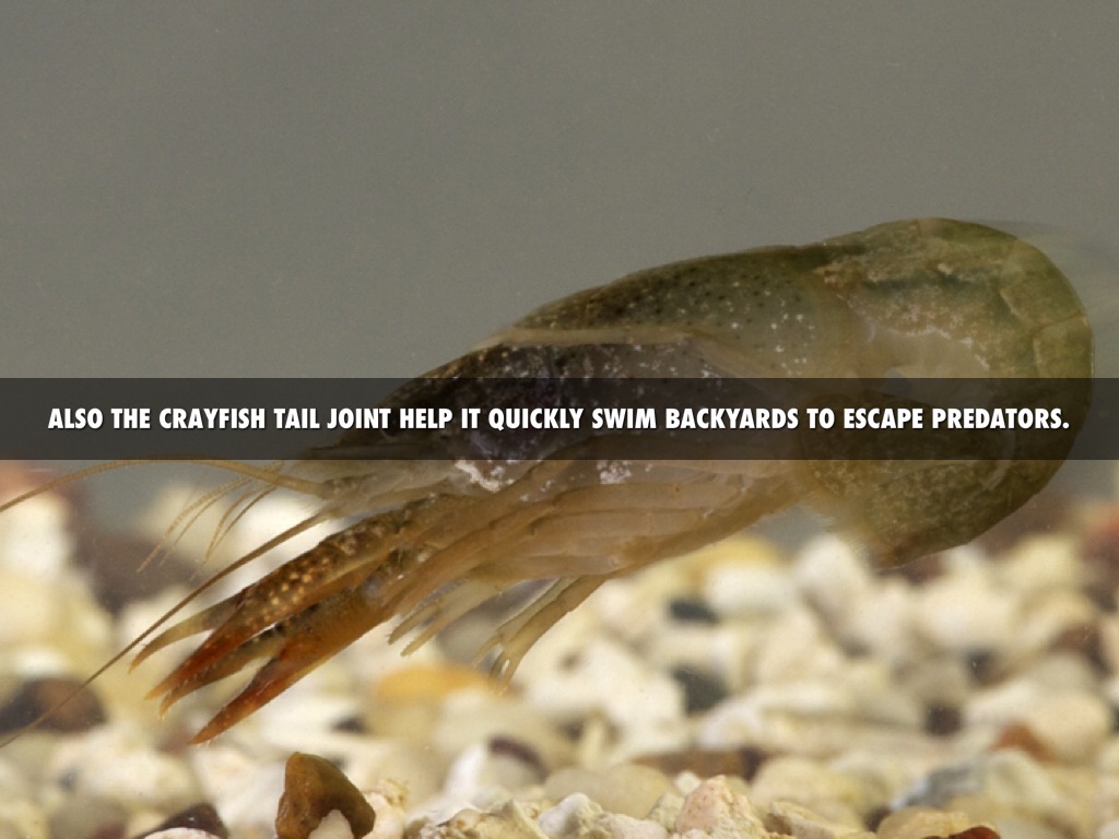 ALSO THE CRAYFISH TAIL JOINTS HELP IT QUICKLY SWIM BACKYARDS TO ESCAPE PREDATORS.