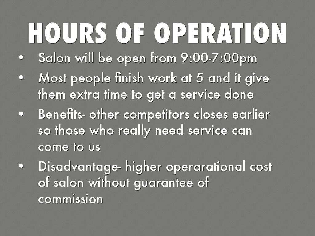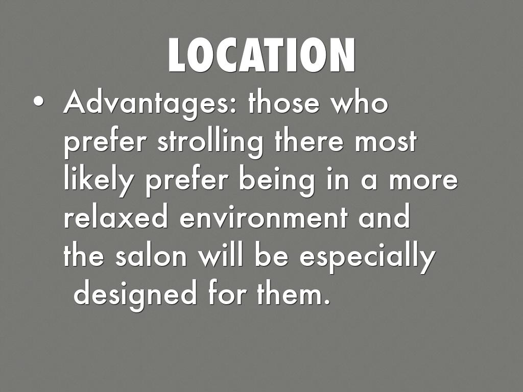 Advantages: those who prefer strolling there most likely prefer being in a more relaxed environment and the salon will be especially designed for them.
