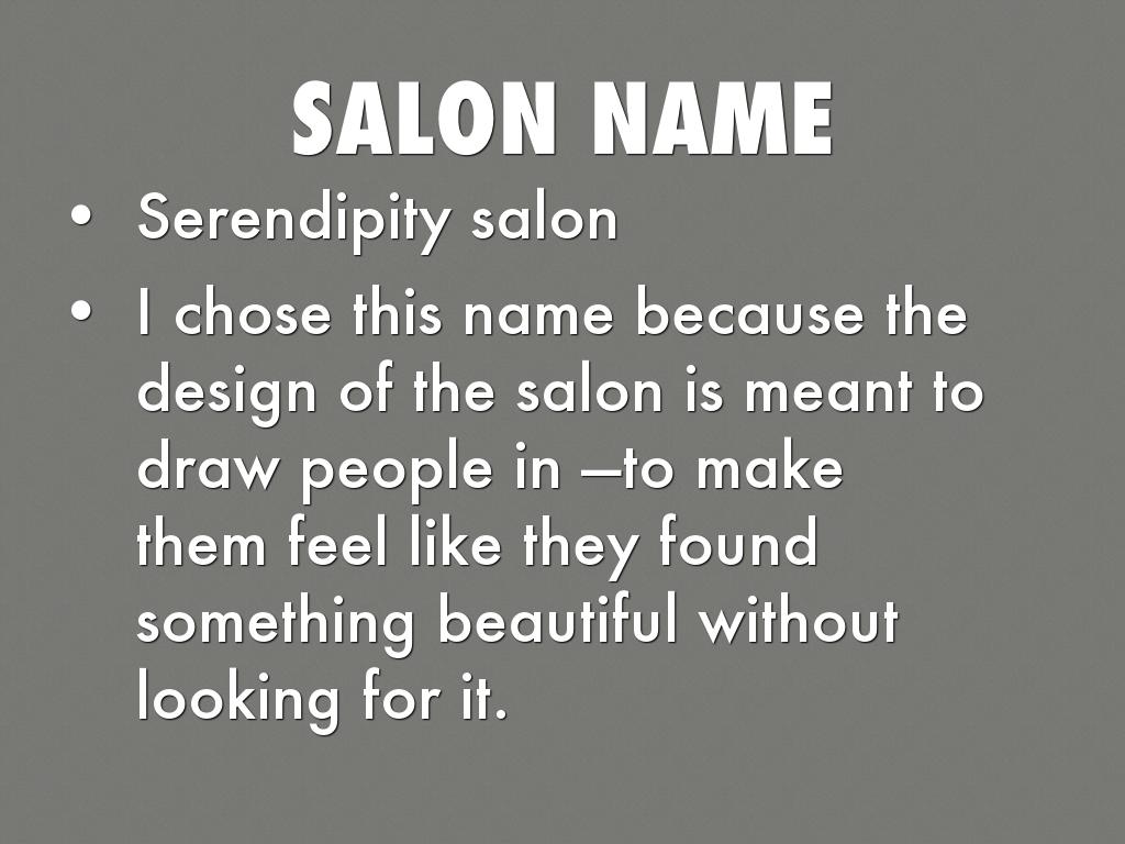 I chose this name because the design of the salon is meant to draw people in —to make them feel like they found something beautiful without looking for it.