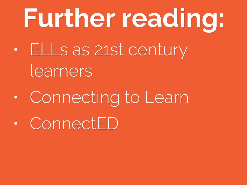 http://www.colorincolorado.org/article/home-language-english-language-learn...Katz, V. S., & Levine, M. H. (2015). Connecting to learn: Promoting digital equity for America’s Hispanic families. A report of the The Families and Media Project,. New York: The Joan Ganz Cooney Center at Sesame Workshop. Retrieved from