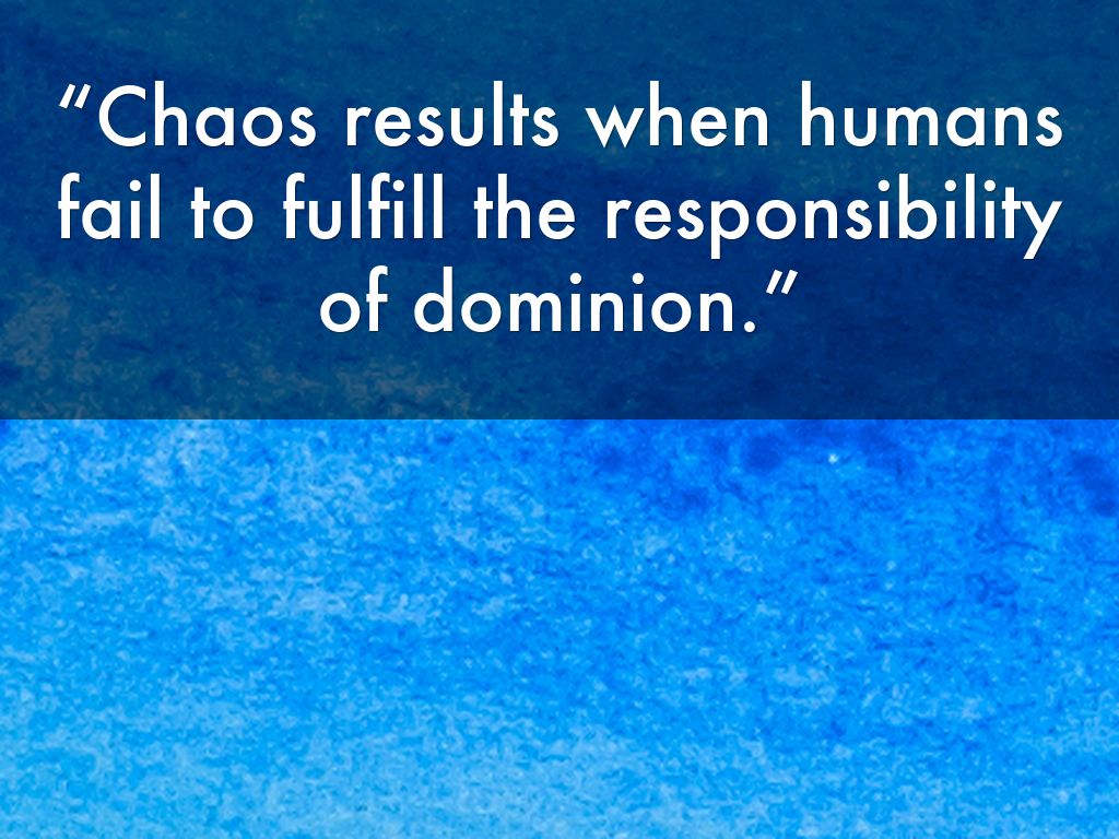 “Chaos results when humans fail to fulfill the responsibility of dominion.”