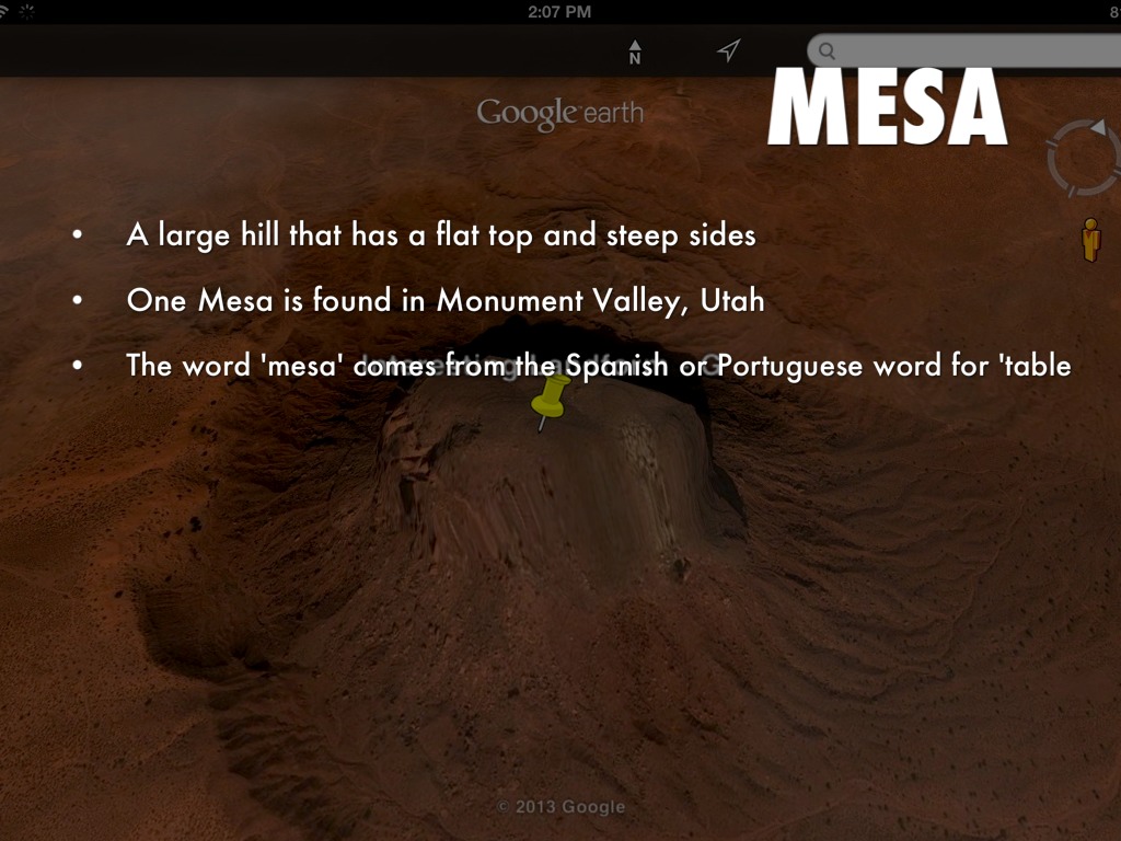 The word 'mesa' comes from the Spanish or Portuguese word for 'table