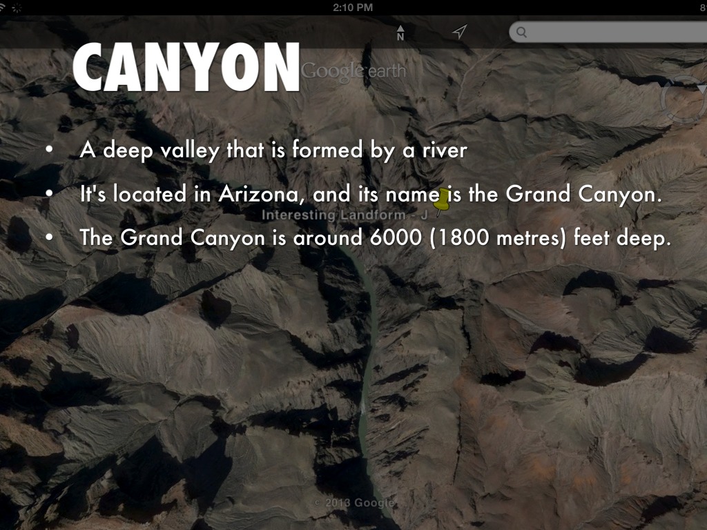 The Grand Canyon is around 6000 (1800 metres) feet deep.