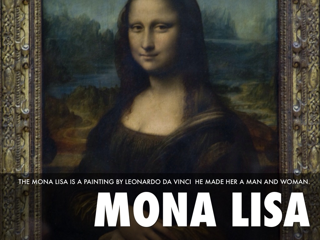 THE MONA LISA IS A PAINTING BY LEONARDO DA VINCI HE MADE HER A MAN AND WOMAN.