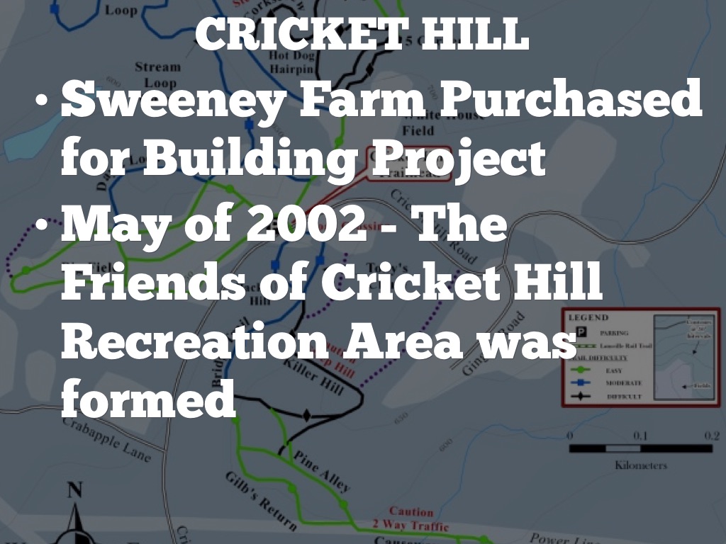 May of 2002 - The Friends of Cricket Hill Recreation Area was formed