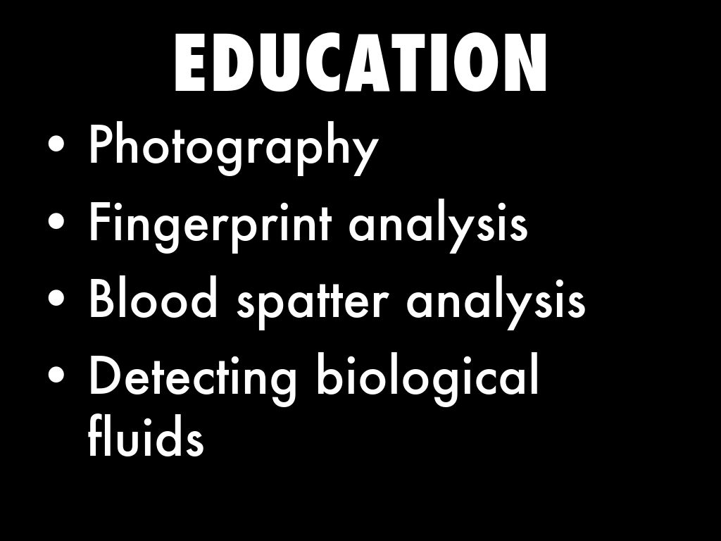 Collect evidence from a scene of a crime, work in a crime lab, and testify in court.