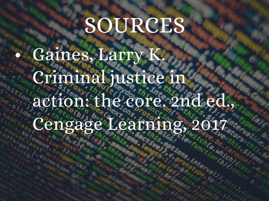 Gaines, Larry K. Criminal justice in action: the core. 2nd ed., Cengage Learning, 2017