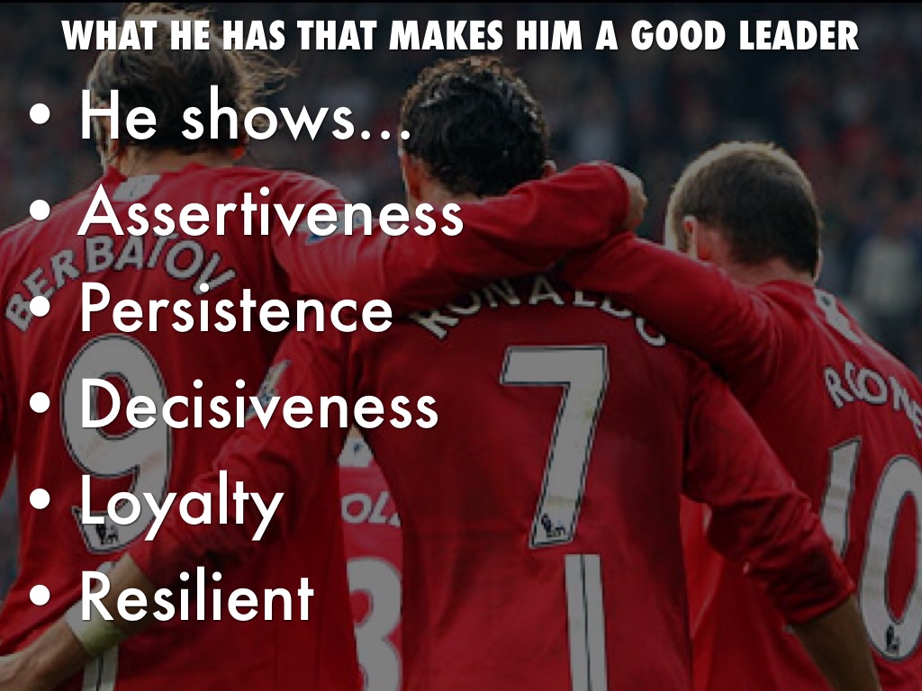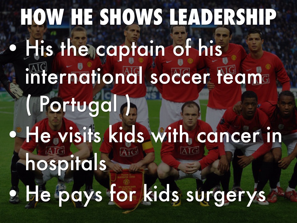 I CHOSE RONALDO BECUASE HE SHOWS A GOOD SELF IMAGE TO HIMSELF AND TO OTHERE