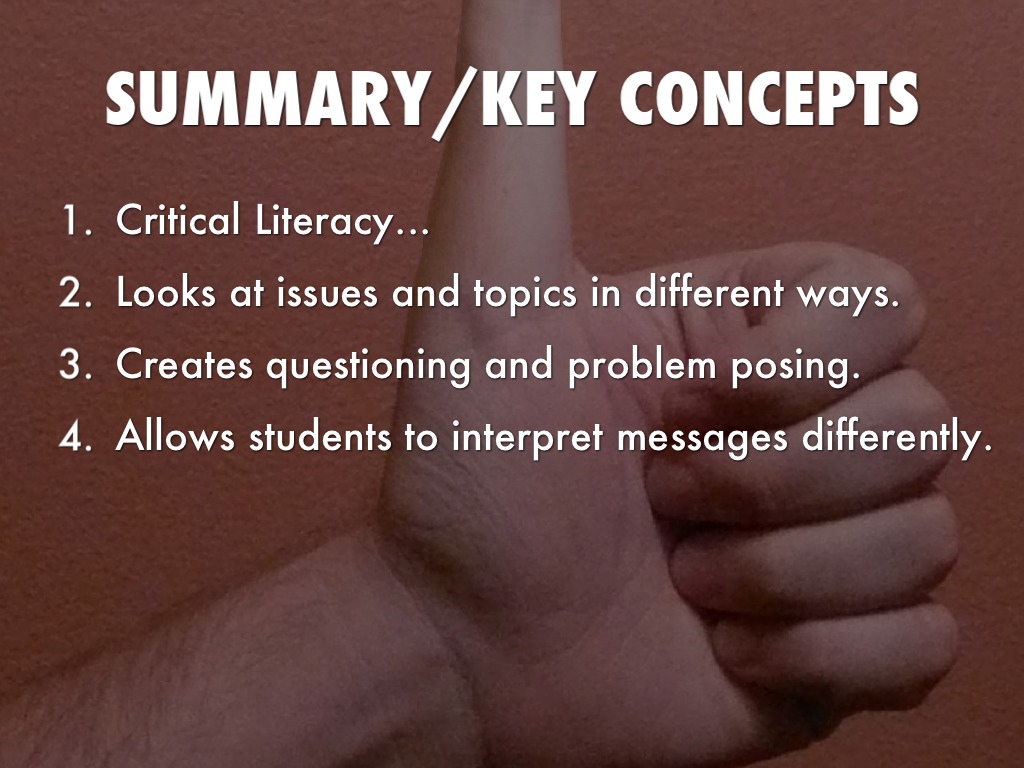 We are looking at Critical Literacy to help students gain the skills to determine where to direct their attention and how to interpret and decipher messages and use them appropriately.