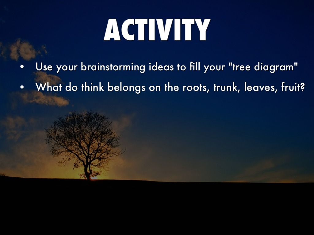 • What do think belongs on the roots, trunk, leaves, fruit?