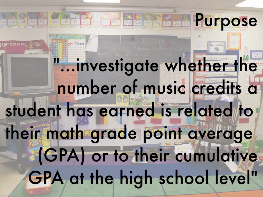 "...investigate whether the number of music credits a student has earned is related to their math grade point average (GPA) or to their cumulative GPA at the high school level"