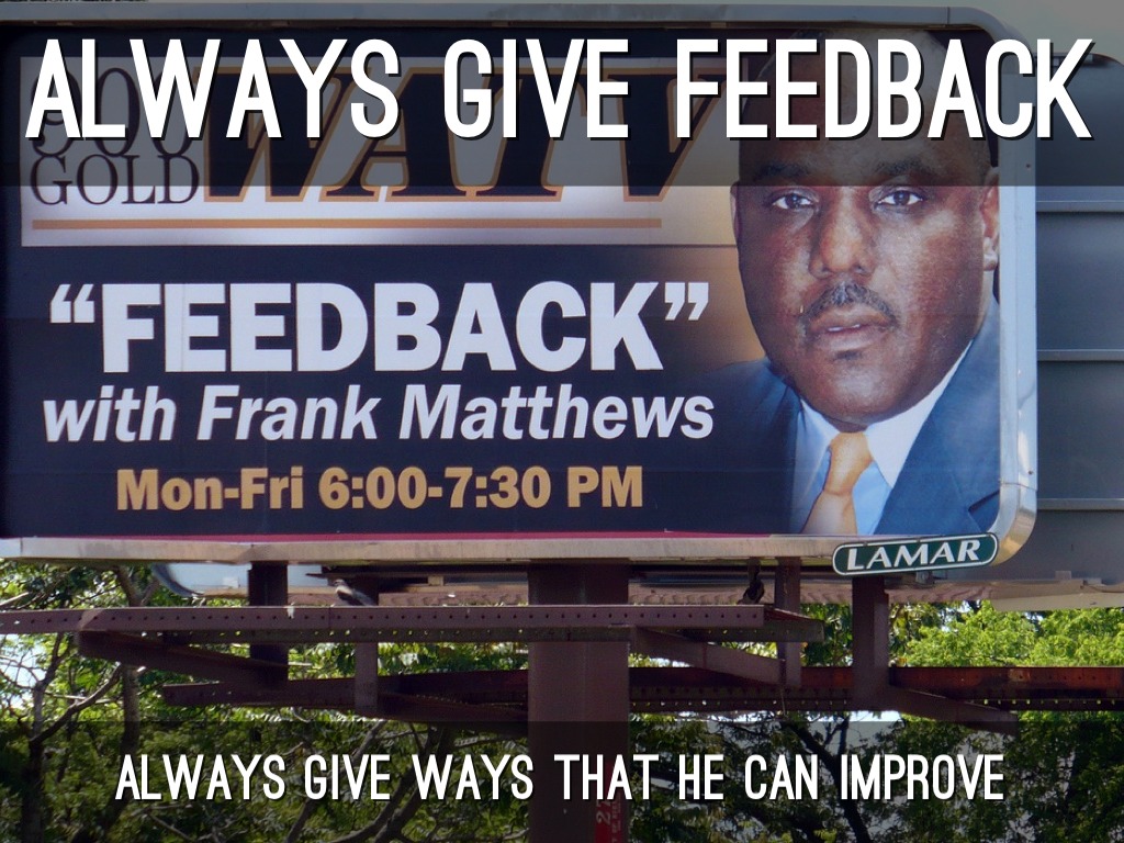 ALWAYS GIVE WAYS THAT HE CAN IMPROVE